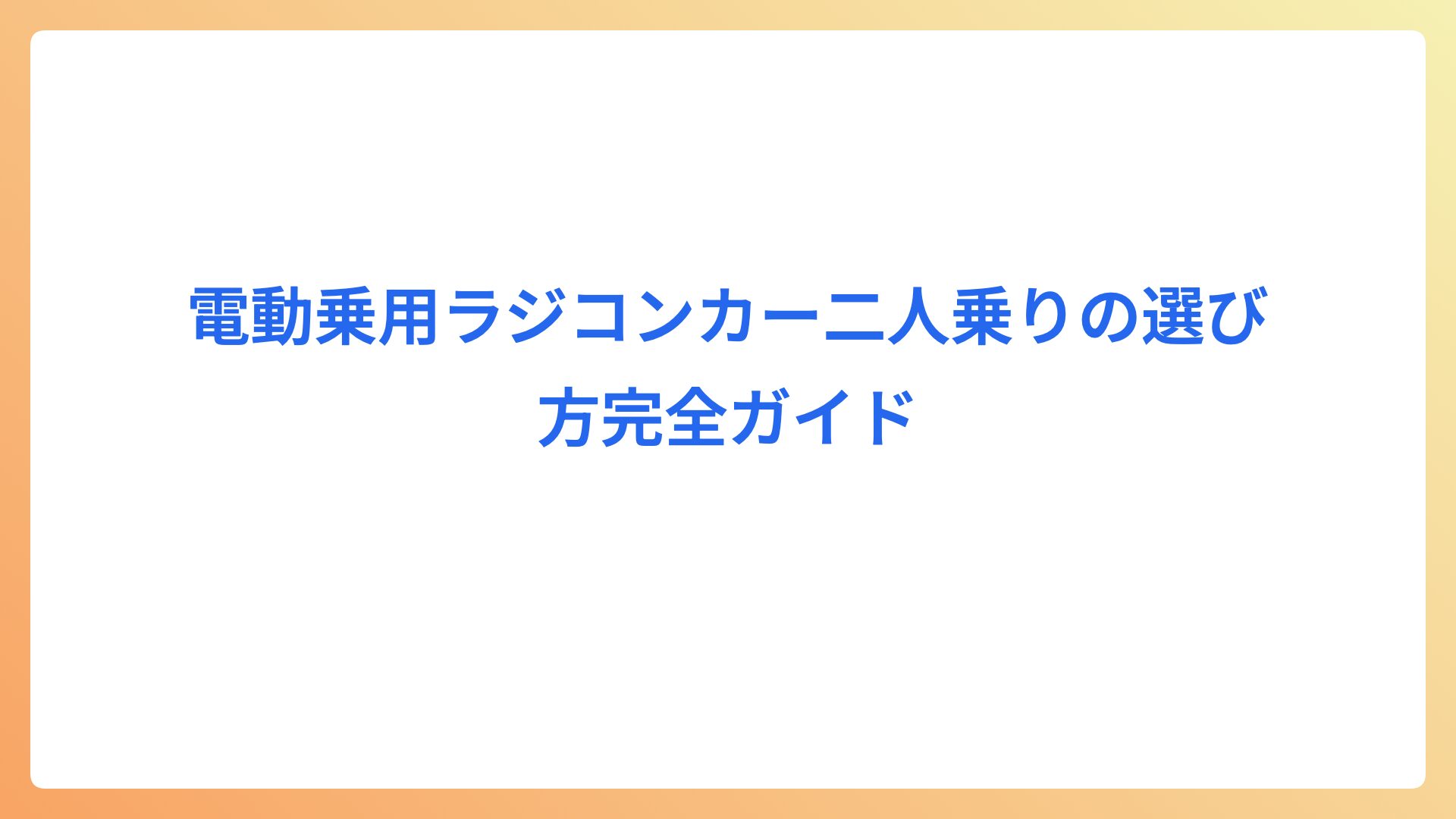 この記事は、電動乗用ラジコンカーで二人乗りモデルの購入を検討している親御さんやイベント運営者、大人も楽しみたいホビー層に向けた完全ガイドです。