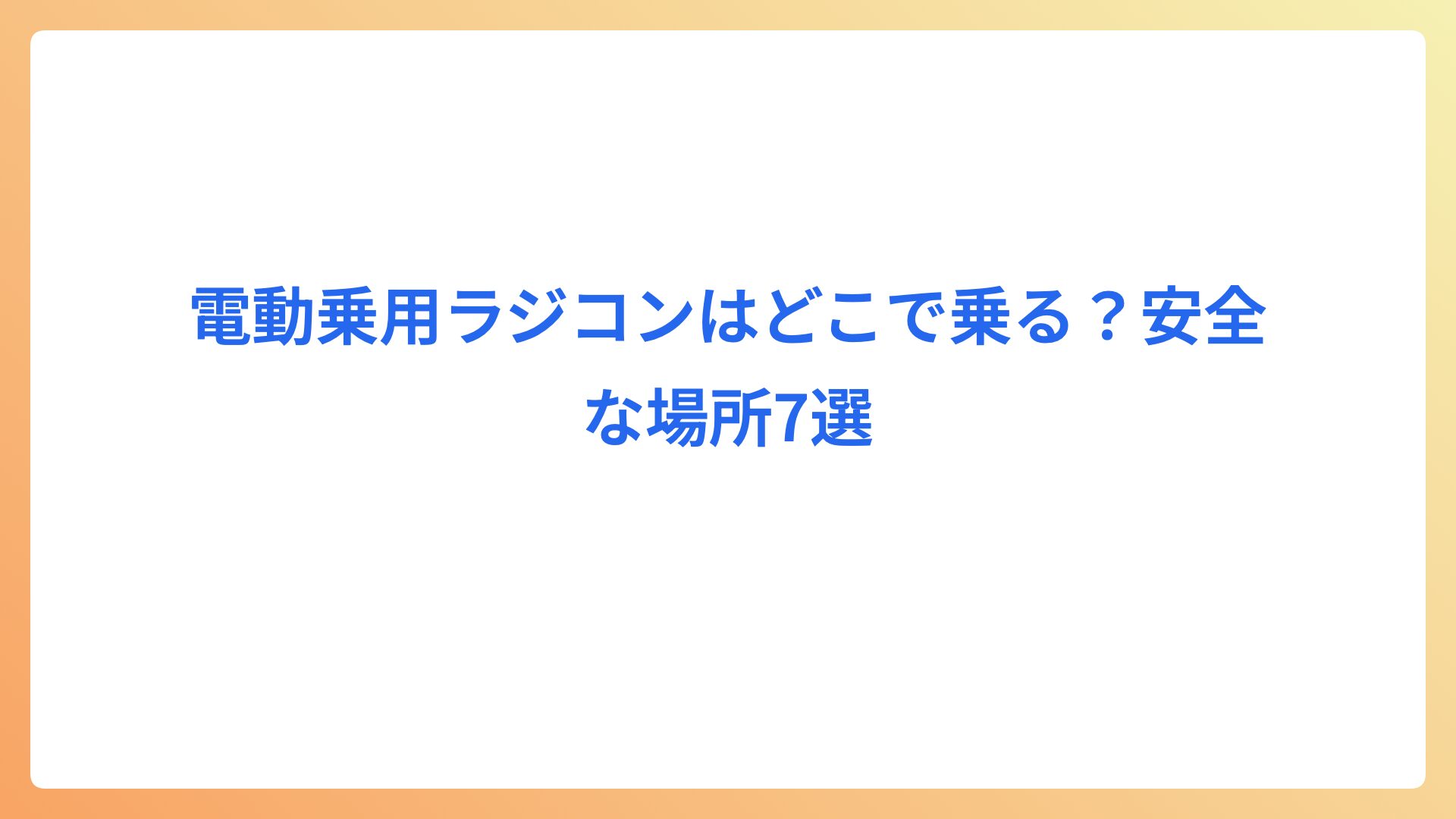 この記事では「どこで乗るか」を中心に、安全に遊べる場所の選び方、許可や保険の確認、現地で守るべきルールと準備物、機種選びやメンテナンスの注意点までを網羅的に解説します。