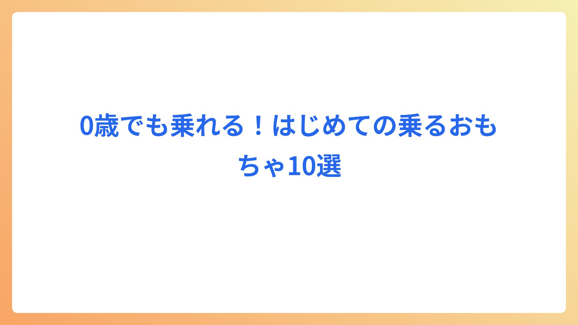 0歳でも安全に『乗れるおもちゃ』に注目し、選び方のポイントから具体的なおすすめ商品、購入時の注意点や安全対策までをわかりやすくまとめました。