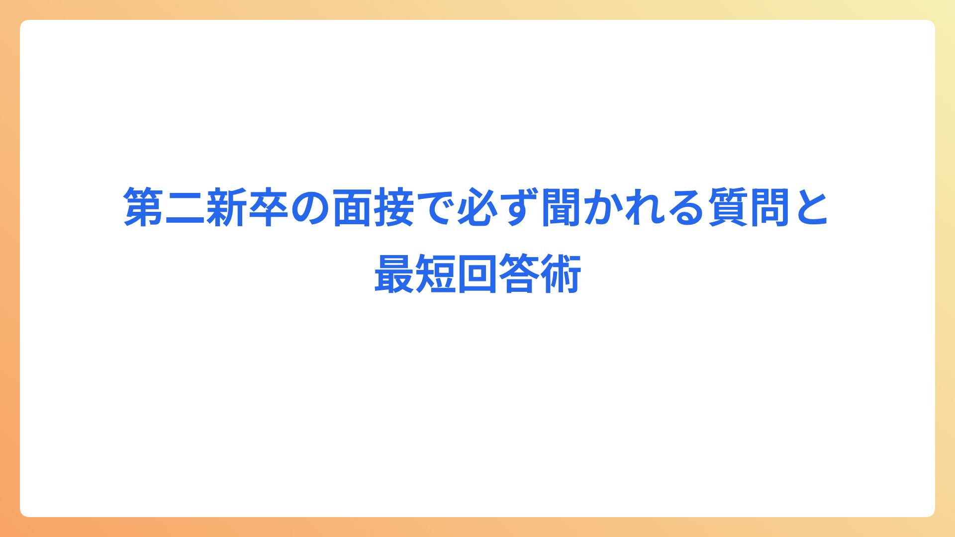 この記事は第二新卒で転職や再就職を目指す20代の方に向けて、面接で必ず聞かれる質問とその最短回答術をまとめたものです。